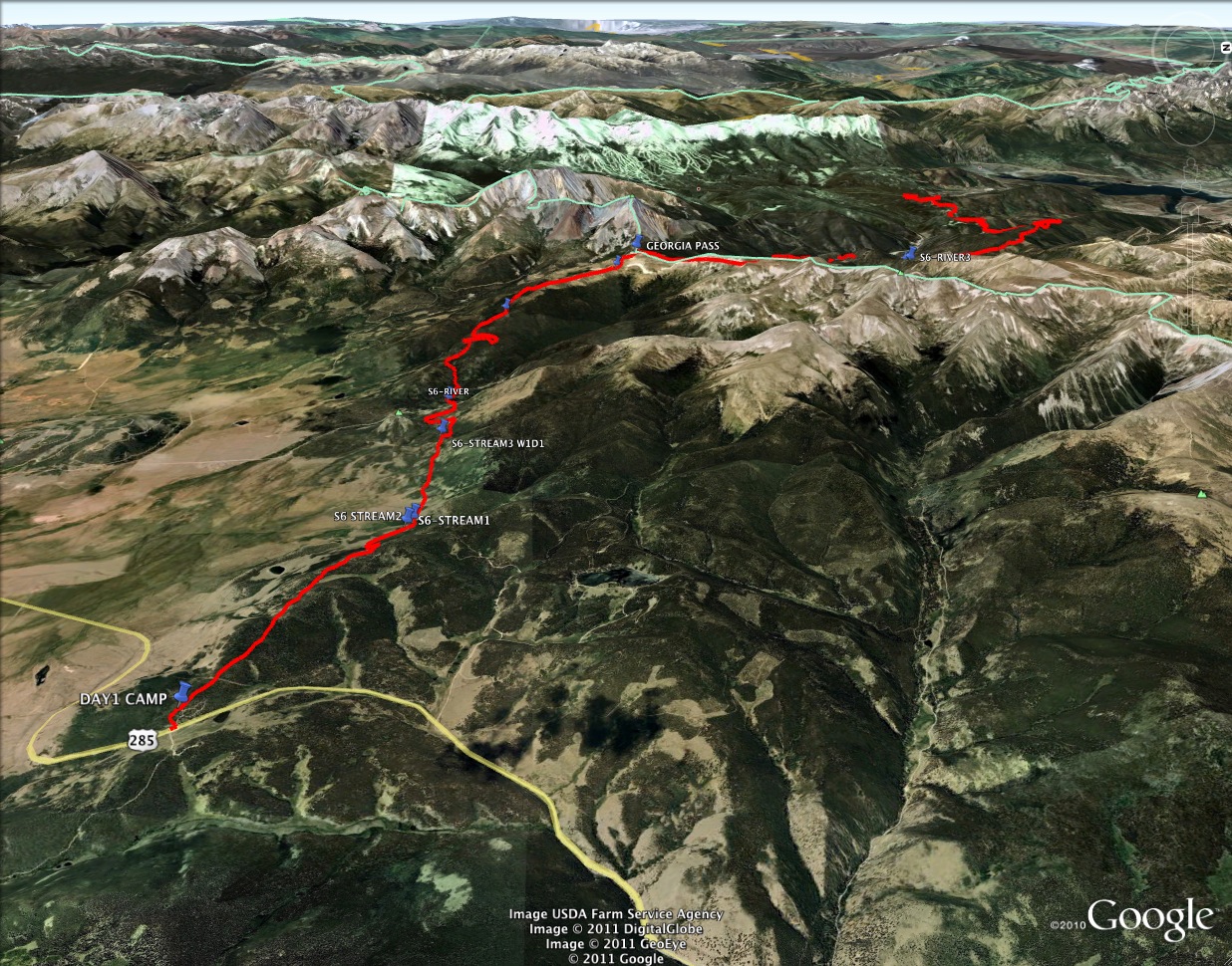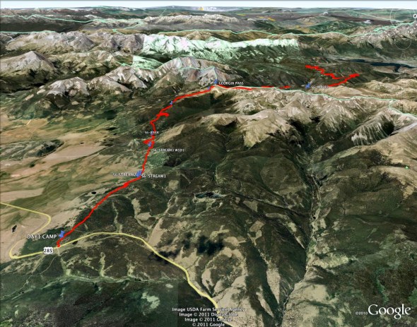 The initial miles are rough, but you can put down a decent pace. The climb up Georgia Pass is OK, for geared fanatics. It was a nice hike for me. The descent from Georgia Pass is rough, to say it nicely. I walked a few steep and rocky sections.